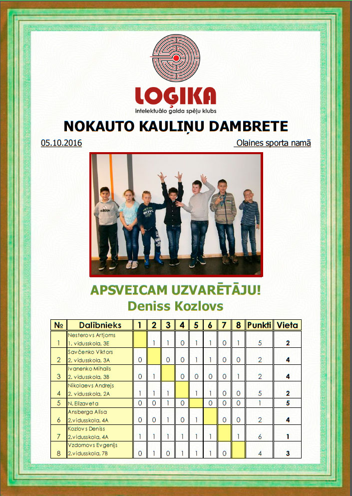 Nokauto kauliņu dambrete sacenstības