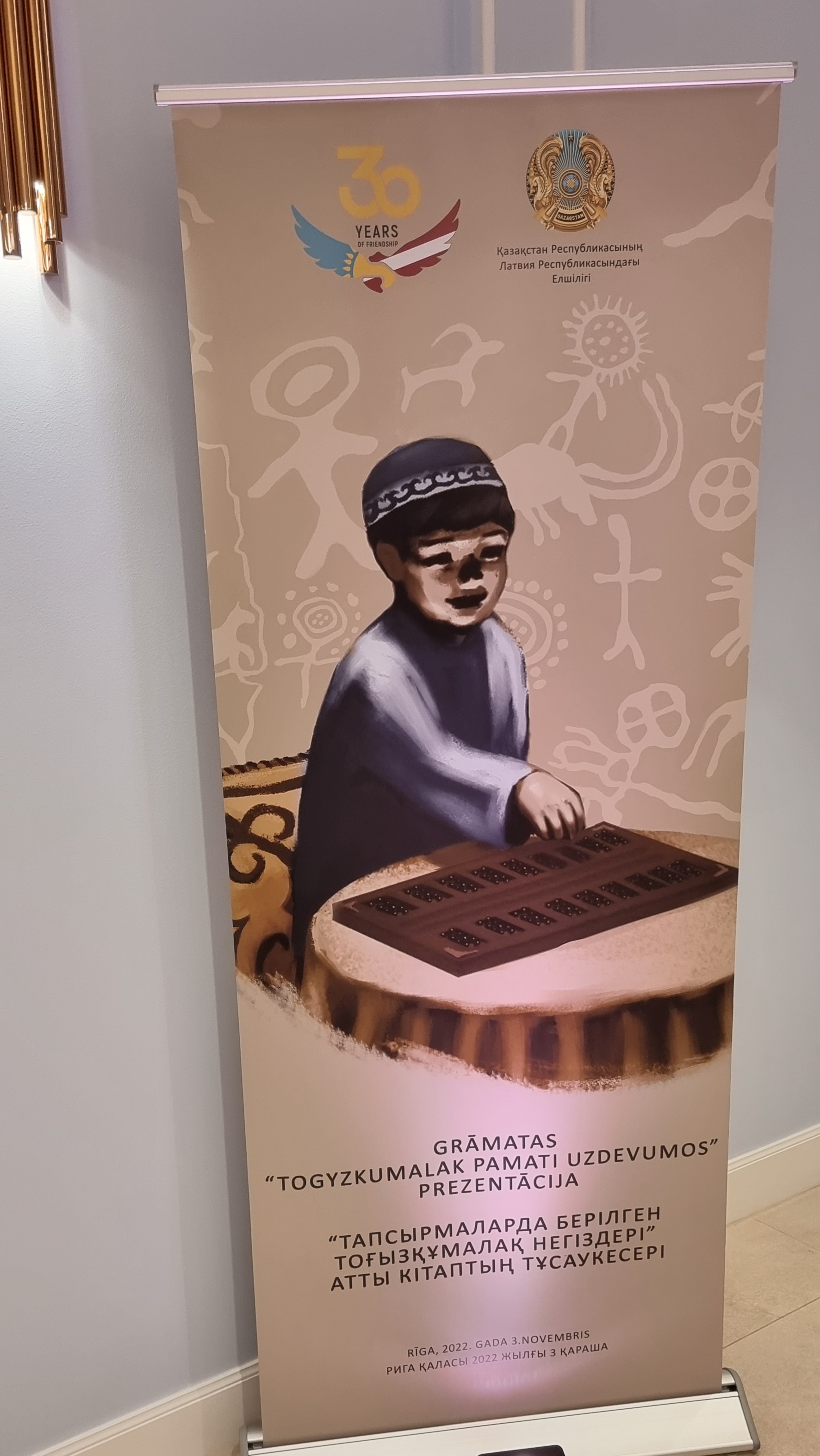 3.novembrī, Rīgā, Kazahstānas Republikas vēstniecībā notika grāmatas “Togiz Kumalak pamati uzdevumos” svinīgā prezentācija. Uz grāmatas prezentāciju atlidoja delegācija no Kazahstānas. Delegācijas sastāvā bija Alihans Baimenovs (Togiz Kumalak starptautiskās federācijas prezidents), Bakdaulet Sabitov (Kazahstānas nacionālo sporta veidu direktors) un divi Togiz Kumalak pasaules čempioni. Viesu vidū arī bija Latvijas izglītības iestāžu, zinātņu akadēmijas un kultūras pārstāvji, kā arī citu valstu diplomāti.