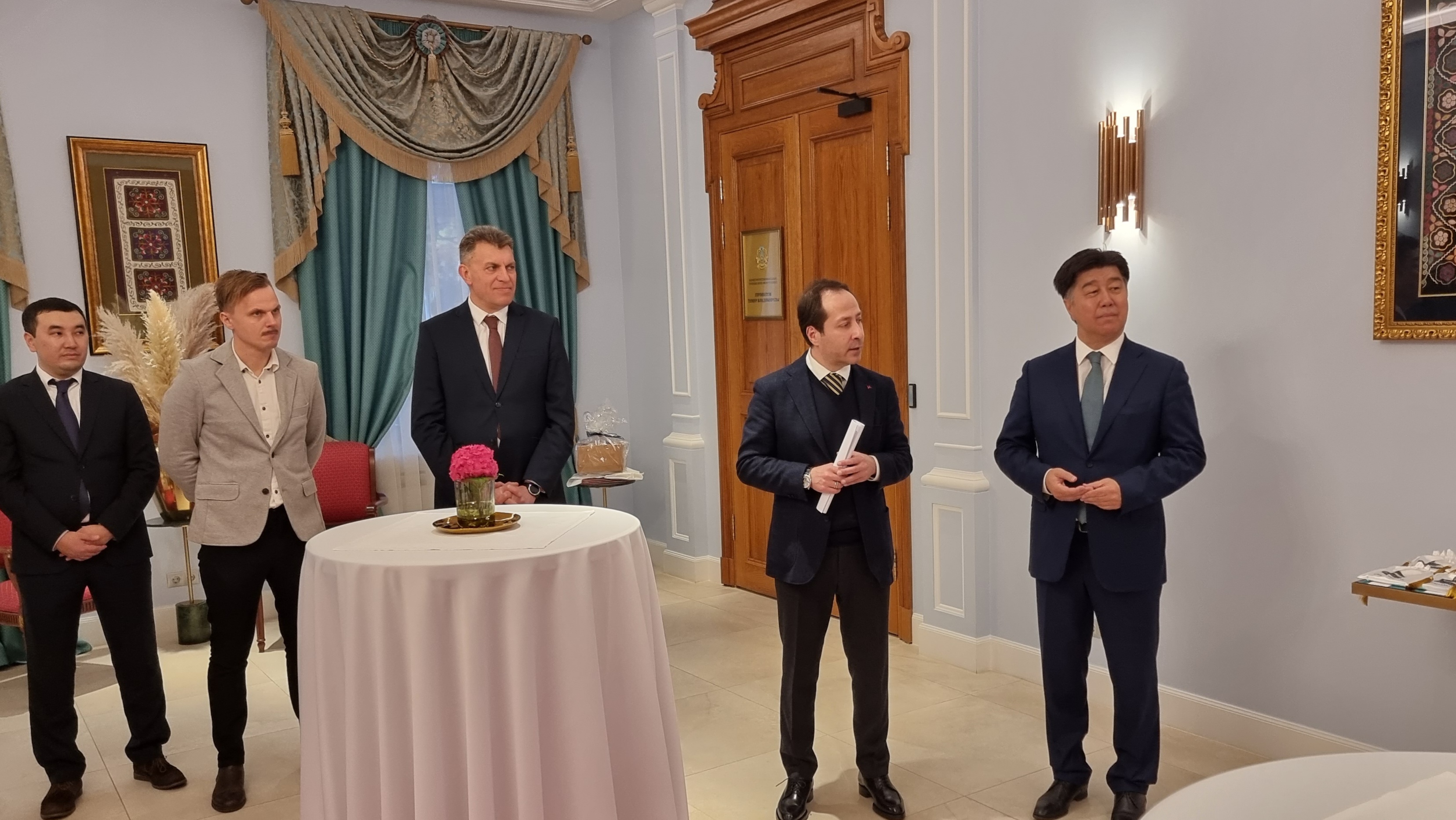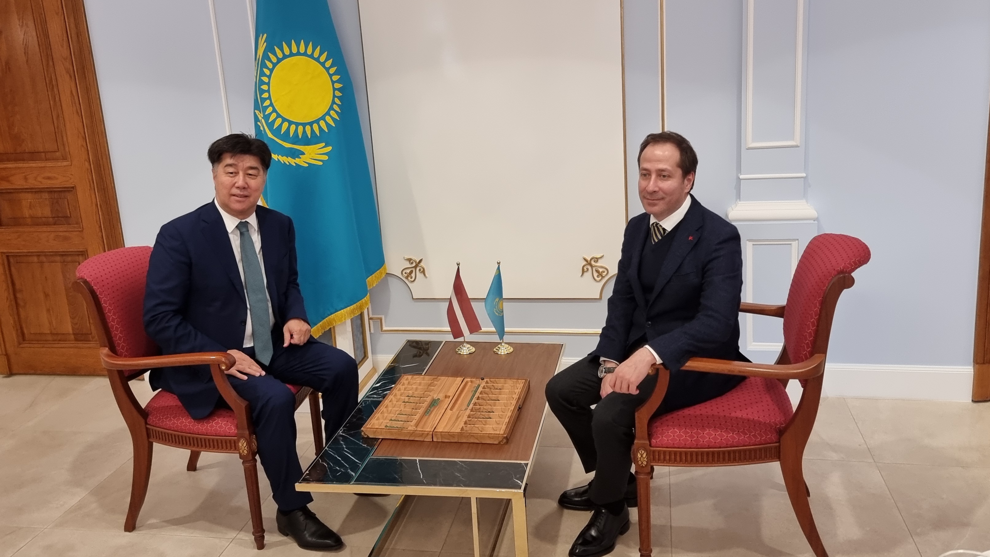 Čmiļsa kungu atbalstīja arī Alihans Baimenovs, uzsverot, ka, apmeklējot Olaines sporta namu, bija patīkami pārsteigts par Latvijas Togiz Kumalak sportistu līmeni. Baimenova kungs Olaines novada domes pārstāvjiem uzdāvināja Togiz Kumalak profesionālo spēļu komplektu. Jāatzīmē, ka Baltijas valstīs tādas klases komplekti ir tikai divi. Viens ir Kazahstānas vēstniecībā Rīgā, bet otrs tagad atrodas Olainē.